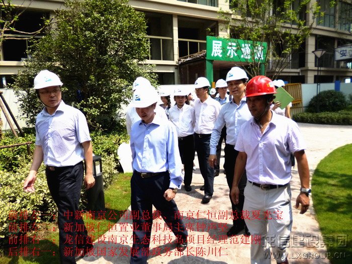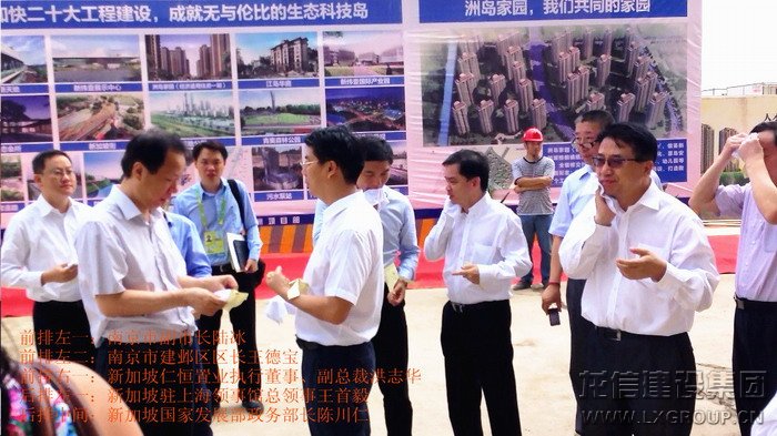 2013年8月16日上午,中、新領導考察團蒞臨江心洲在建項目南京生態科技島參觀考察,考察團由新加坡領導人力部代部長兼國家發展部政務部長陳川仁、駐華大使羅嘉良、駐滬領事館總領事王首毅、駐滬領事館領事陳櫘伊、國際企業發展局中國華東區副司長王俐恩、仁恒置業董事局主席鐘聲堅、勝科城鎮發展有限公司總裁趙萬成、仁恒置業執行董事執行副總裁洪志華,中方南京市副市長陸冰、南京市建鄴區區長王德寶、中新南京公司副總裁南京仁恒副總裁夏光寶、馮亞軍、張俊、王杰等其他領導組成,龍信建設集團江心洲項目經理范建剛全程陪同。